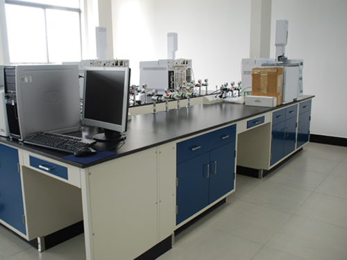 鋼結構:這種結構由鋼支架、器皿柜、臺面和試劑架等構件組成。鋼支架系薄壁型鋼制成,腳支架底腳有微調螺絲,鋼支架之間留有管道空間。器皿柜是木制構件,可以靈活地掛在鋼支架上。這種材質盡管其外表有防腐涂料,但難免有銹蝕,一般用于儀器分析室。
